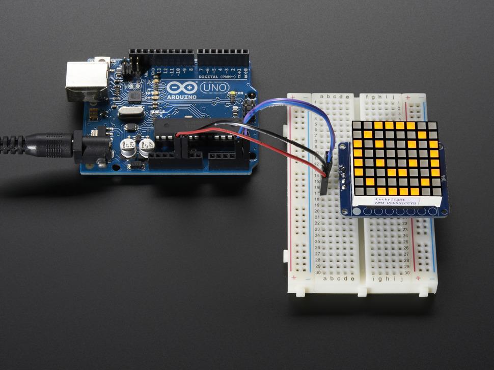 De meegeleverde kit bevat een voorgemonteerde 1,2" LED-rugzak, een 1,2" 8x8-matrix en een 4-pins header , die slechts een beetje soldeerwerk vereist. Onze gedetailleerde tutorial en aangepaste library stroomlijnen de installatie, zodat u binnen enkele minuten afbeeldingen of cijfers kunt display .