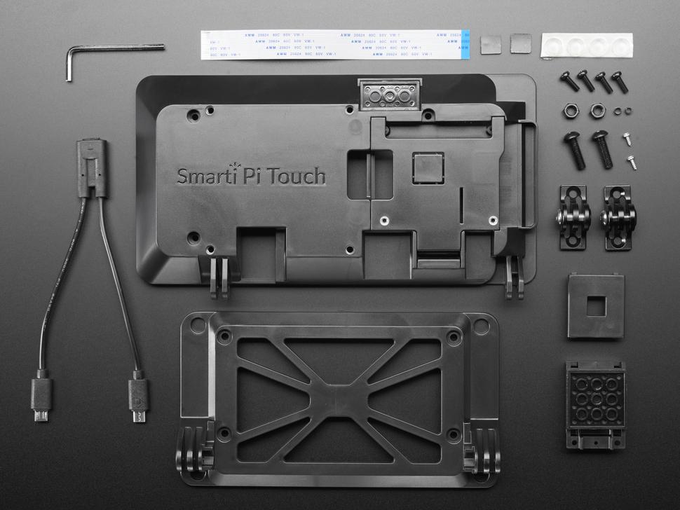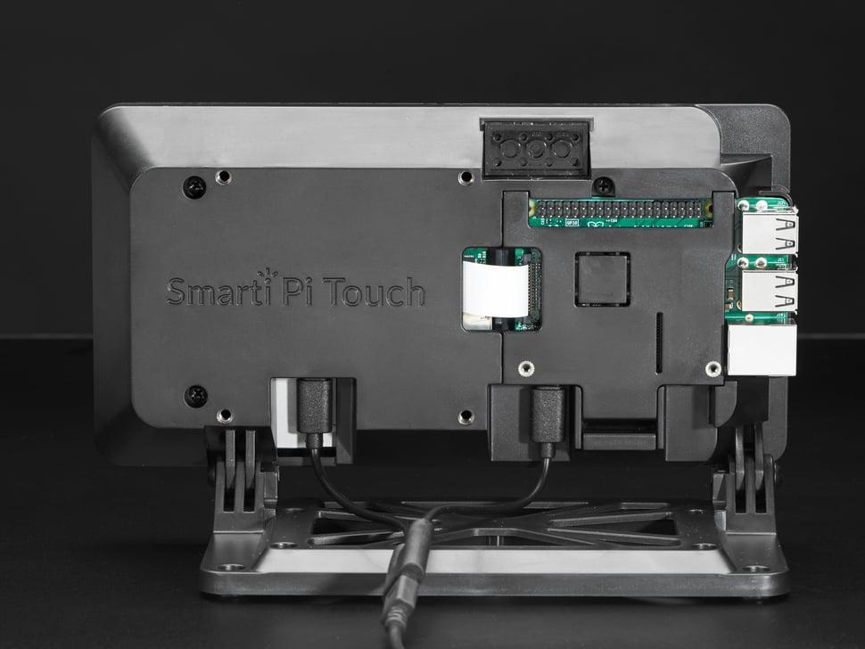 De SmartiPi Touch-standaard biedt een slanke en stevige oplossing voor de integratie van een 7-inch touchscreen- display met de Raspberry Pi . Het display wordt stevig vastgezet met vier schroeven, terwijl de Raspberry Pi aan de achterkant netjes is afgesloten. Een klepje bedekt het Pi-compartiment, waardoor aansluiting via de DSI-poort eenvoudig is.