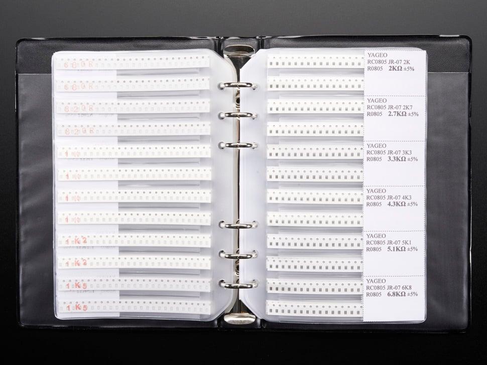 Altijd de juiste SMT-componenten bij de hand met deze essentiële 0805 Weerstanden en Condensatoren-boekenset. Het boek bevat transparante pagina's vol SMT 0805-componenten, georganiseerd, gelabeld en klaar voor gebruik.
