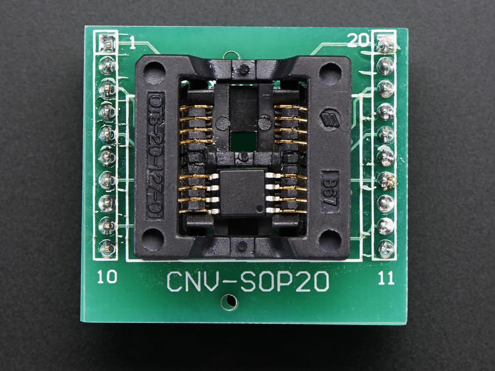 De socket is vakkundig ontworpen en wordt op twee printplaten gesoldeerd. Hierdoor ontstaat een 20-pins DIP met een tussenruimte van 0,6 inch. Hierdoor is de socket eenvoudig te integreren in breadboard en zijn snelle testopstellingen mogelijk.