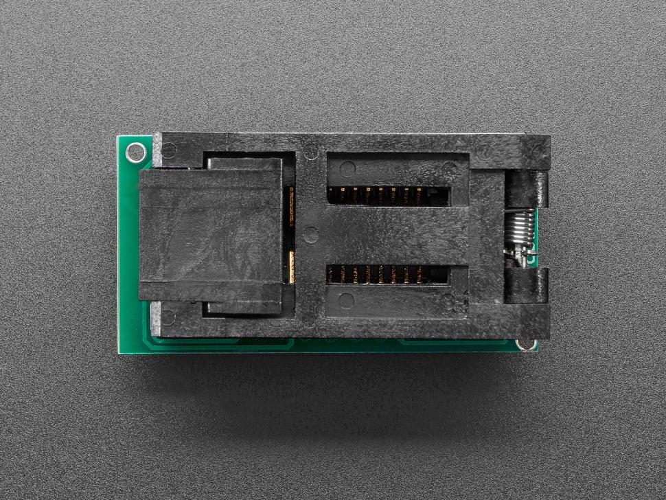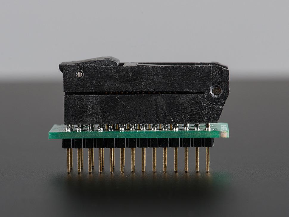 De socket is gemonteerd op twee printplaten, waardoor deze effectief wordt omgezet naar een 28-pins DIP met een afstand van 0,45 inch. Hoewel deze afstand niet standaard 0,1 inch is, kunnen de pinnen eenvoudig worden gebogen om zonder veel gedoe in een breadboard te passen.