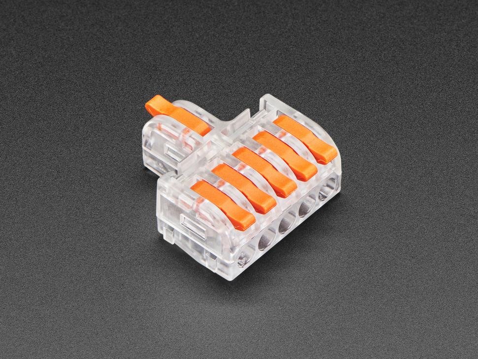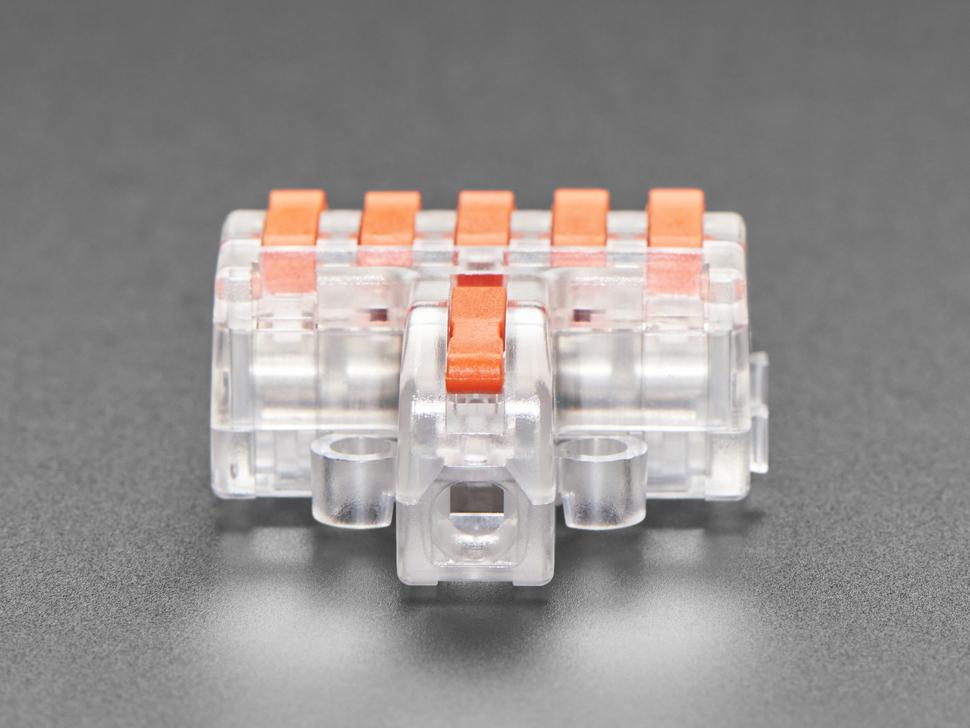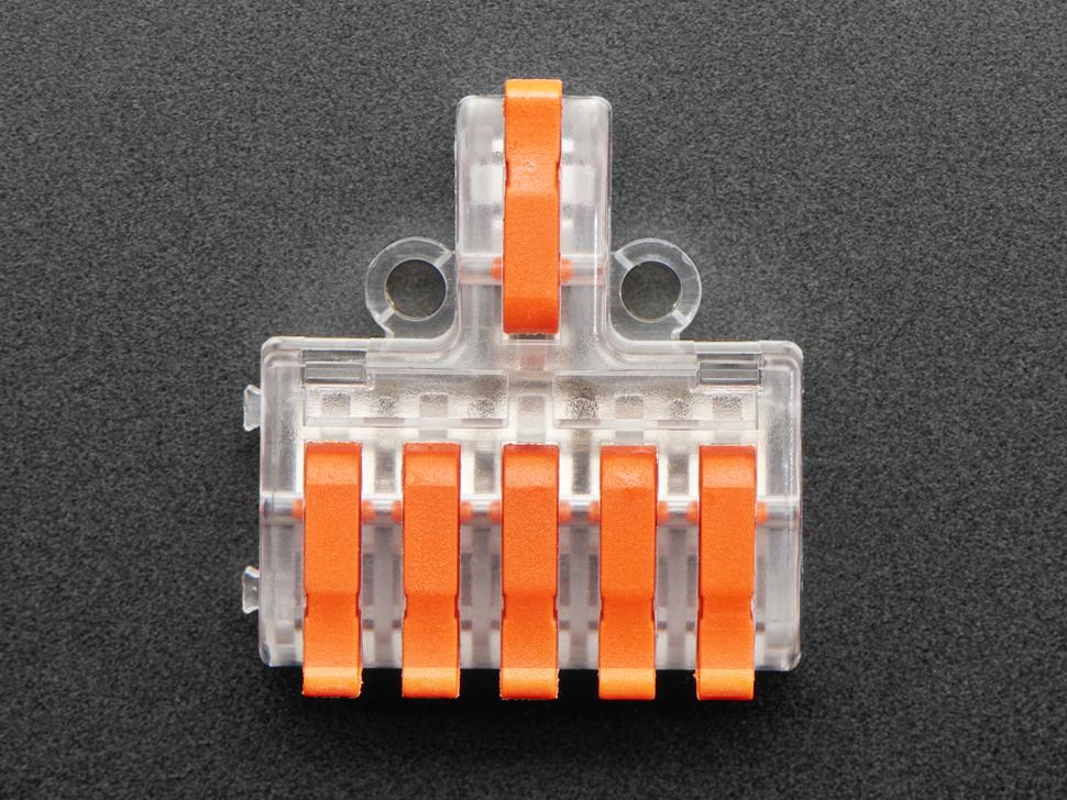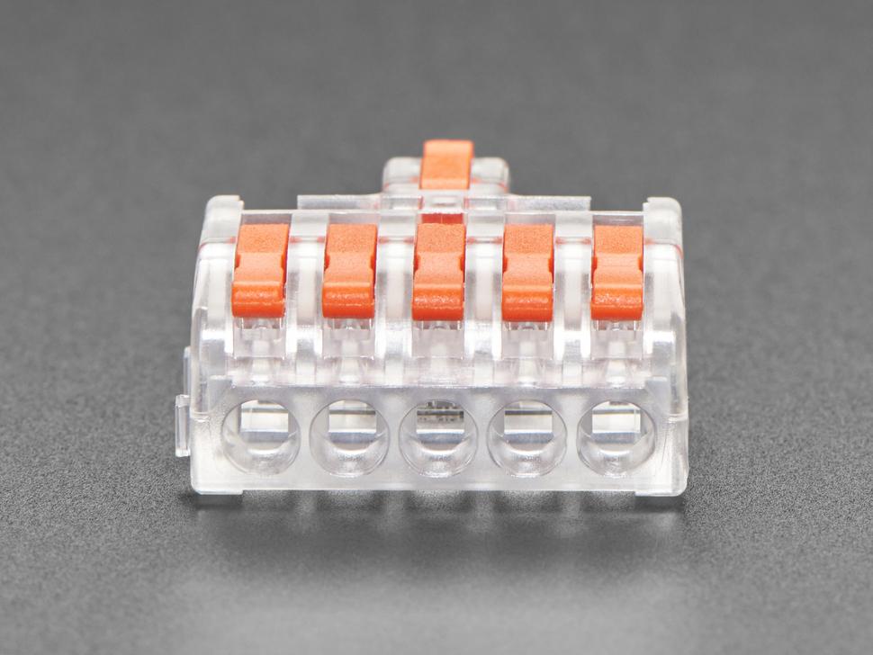 Elk blok heeft één input en vijf outputs, wat het ideaal maakt voor eenvoudig vermogen of signaalfan-outs. Gebruik ze om elk signaal of elke voedingslijn die je wilt uitbreiden over meerdere aansluitingen te beheren. Binnenin zit een metalen blok en hendeltjes die open en dicht klikken, die zowel gestrande als solide draden van 12 AWG tot 24 AWG aankunnen, waardoor je geen schroevendraaiers of krimptangen nodig hebt.