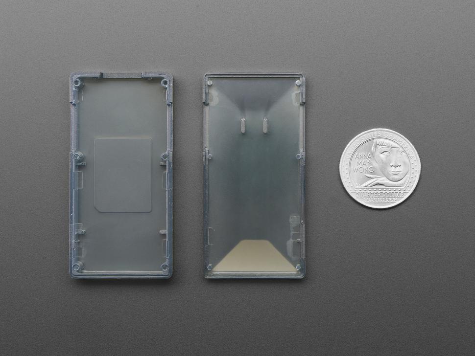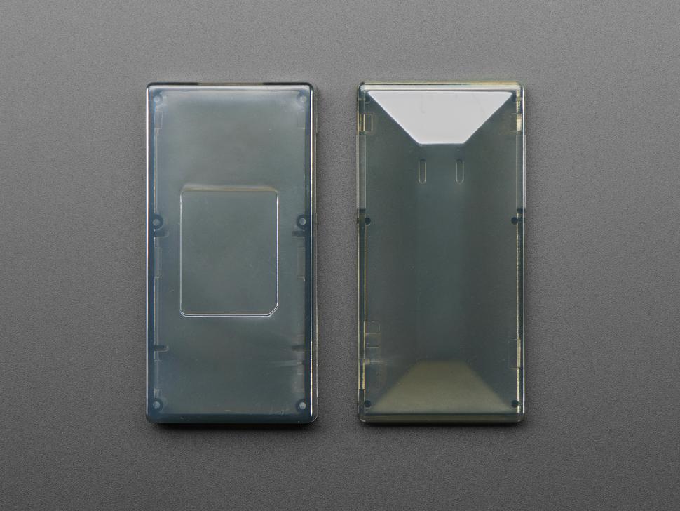 Gemaakt van grijs doorschijnend plastic, is het geschikt voor kleine TFT's, OLED's of LED's. Het ontwerp bestaat uit twee delen die stevig over de printplaat klikken, waardoor alles goed op z'n plek blijft zitten. Dit maakt het ideaal voor USB power monitoring borden. Oorspronkelijk bedoeld voor in-line monitors of boosters met USB A plug-en-socket connectors, is het veelzijdig genoeg voor kleinere connectors. Mogelijke configuraties zijn eindsloten voor USB-poorten of -stekkers, en zijsleuven voor knoppen, schakelaars of sensoren.