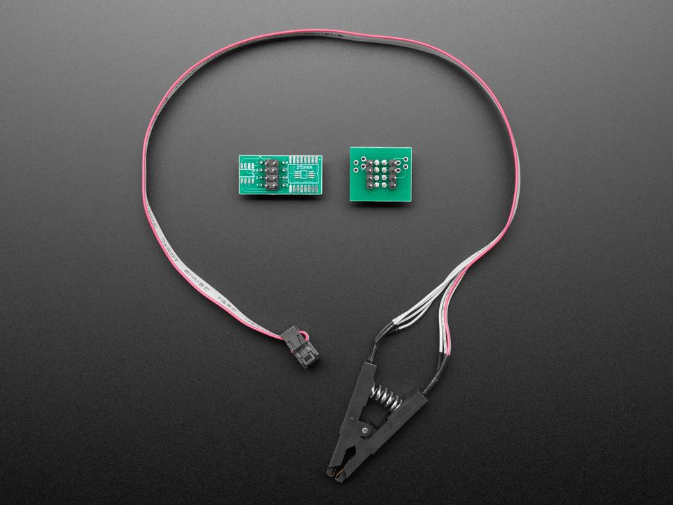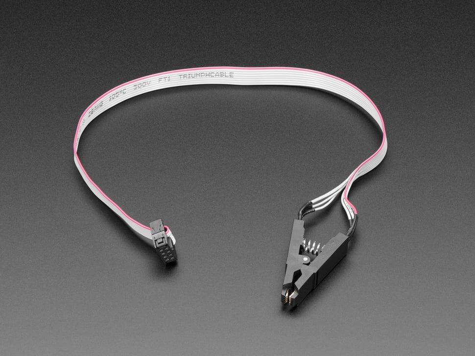 Perfect voor het testen van I2C-, SPI- of QSPI-verbindingen, waardoor firmware kan worden gebrand zonder desoldeerwerk. De robuuste maar zachte grip van de clip zorgt ervoor dat er geen schade ontstaat dankzij twee rijen vergulde contacten. De continuïteit wordt gewaarborgd via een 28AWG-kabel van ongeveer 30 cm met een adapter, die naadloos integreert met elk breadboard via een 0,1" header .