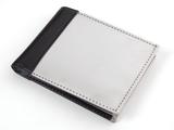 Capaciteit: 6 creditcardvakken, 2 extra vakken, 1 portemonnee; Materialen: Geweven roestvrij staal, zwart leer; Afmetingen: 4,438 x 3,375 x 0,188 inch.