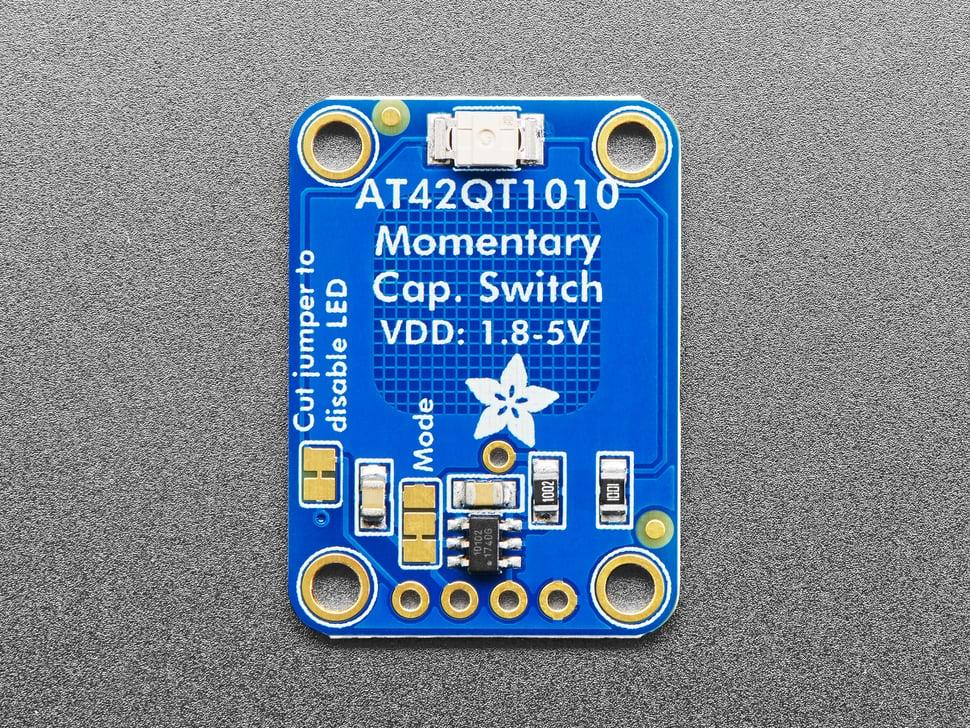 Dit breakout-bord is de eenvoudigste manier om een project te maken met een enkele "tijdelijke" capacitieve aanraaksensor. Hier is geen microcontroller nodig - stroom gewoon met 1,8 tot 5,5 VDC en raak de pad aan om de sensor te activeren.