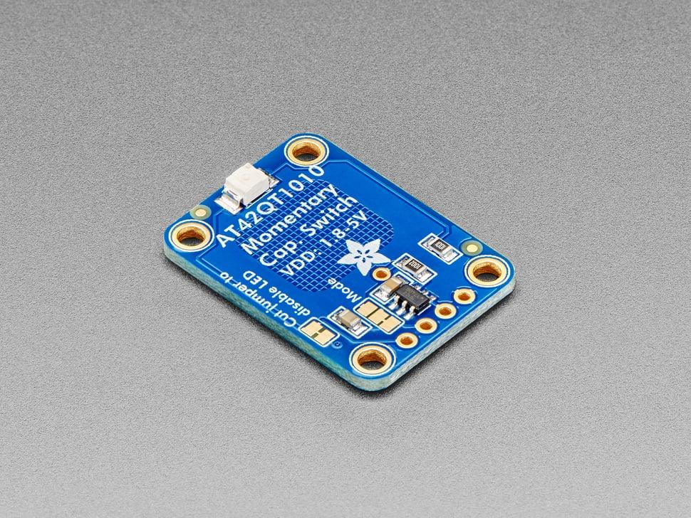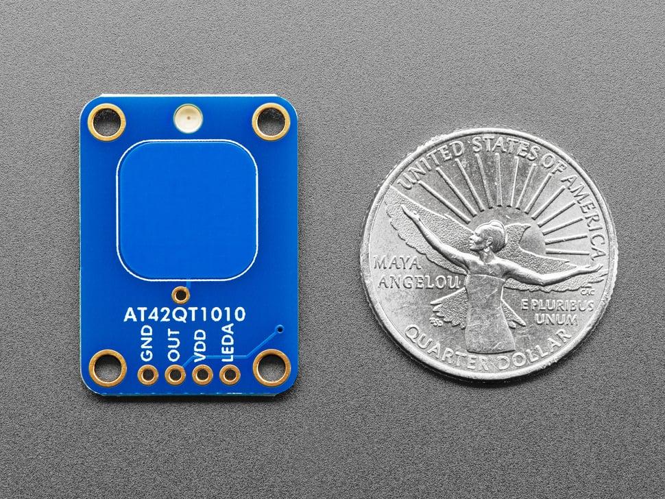 Wordt geleverd met een volledig geassembleerd bord en een klein stokje met een header van 0,1 inch zodat je het kunt solderen en aansluiten op een breadboard. Voor extra contacten raden we aan koperfolie te gebruiken en vervolgens een draad te solderen die van het foliepad naar de breakout wordt verbonden.