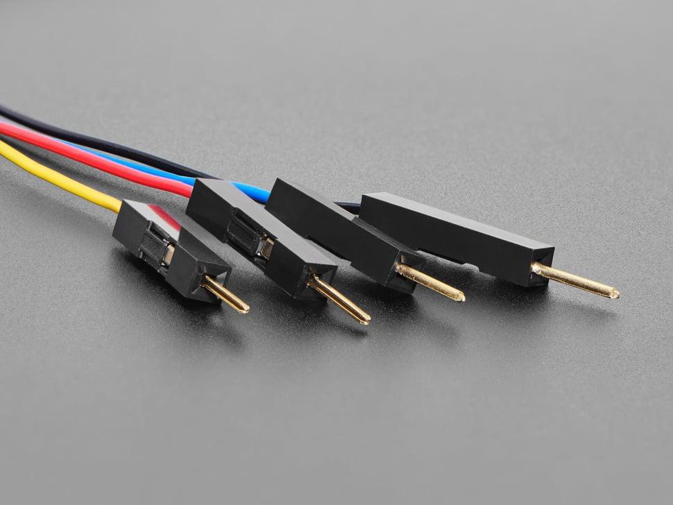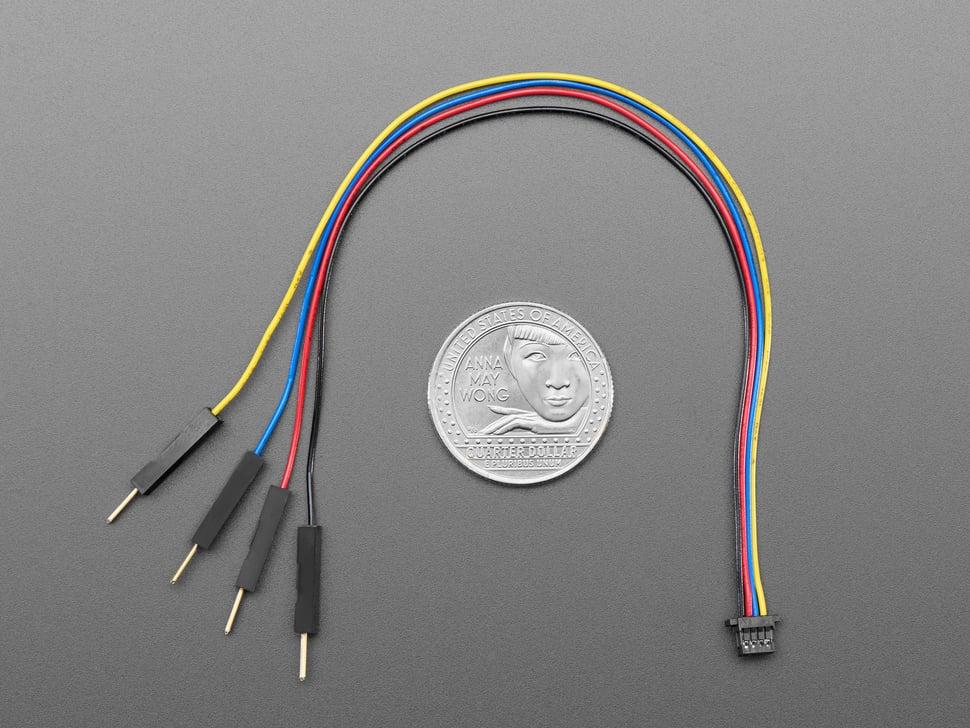 Deze 4-aderige kabel is iets meer dan 150 mm (6 inch) measures en is voorzien van JST-SH female 4-pins connectoren aan het ene uiteinde en premium Dupont male headers aan het andere uiteinde. De kabel heeft een gebruiksvriendelijke vergrendeling met een pitch van 1 mm, wat hem gemakkelijker te plaatsen en te verwijderen maakt dan de grotere JST-PH.