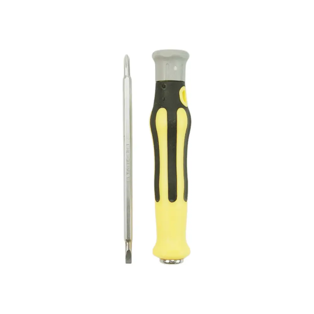 De schroevendraaier met dubbele functie combineert veelzijdigheid en kracht in één gereedschap. Gemaakt van hoogwaardig vanadiumstaal, belooft hij duurzaamheid en slijtvastheid, waardoor hij de tand des tijds doorstaat. De rechte kop is perfect voor taken die precisie vereisen, terwijl de kruiskop is ontworpen voor zwaardere klussen in huis.