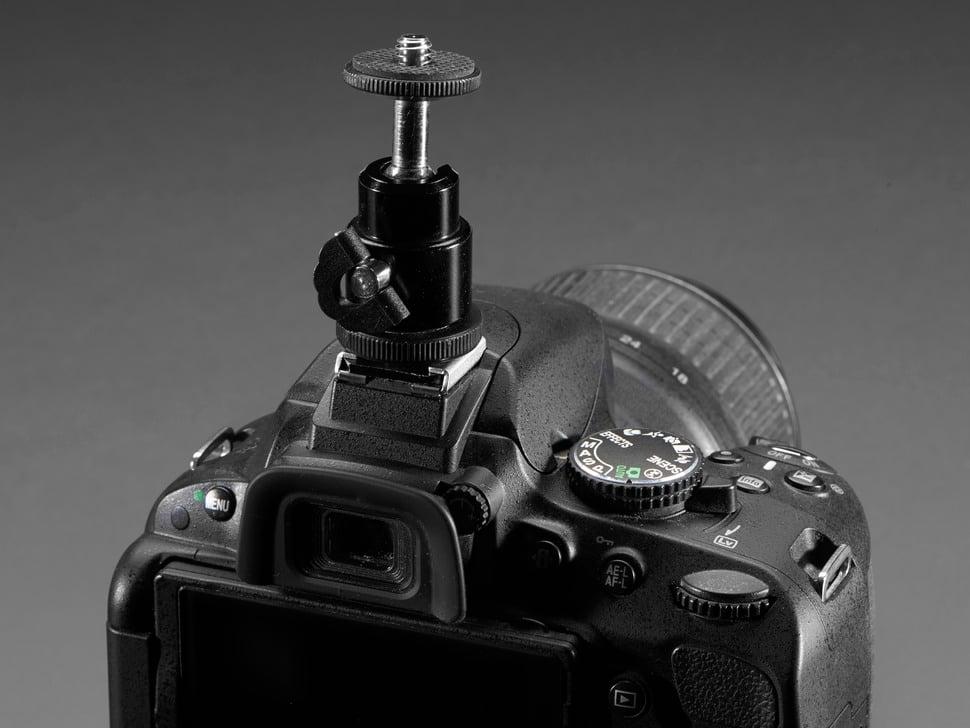 Deze Swivel-Head Pan-Tilt (PTZ) schoenbevestigingsadapter biedt veelzijdige bevestigingsmogelijkheden met zijn standaard 1/4" machineschroefbevestiging die compatibel is met de schoenbevestiging van een camera.