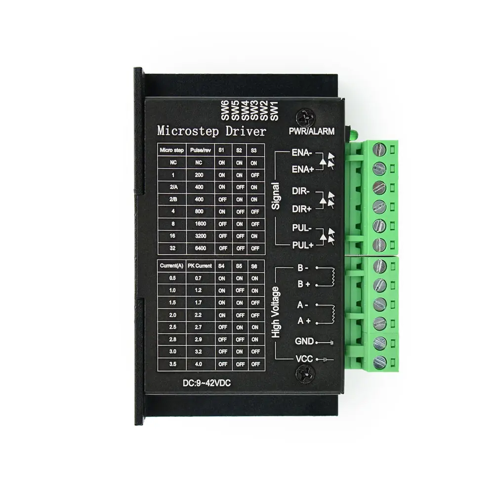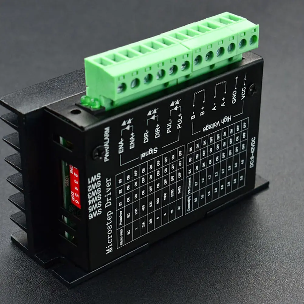 Het aansturen van dit technische wonder opent een wereld aan mogelijkheden. De dynamische TB6600 Arduino motor driver sluit naadloos aan op uw projecten, waardoor u eenvoudig een tweefasen stappenmotor kunt aansturen met Arduino en andere microcontrollers. Met een robuust ingangsvermogen van 9 tot 42 volt en de mogelijkheid om een piekstroom van 4 ampère output , is deze driver geschikt voor de meeste stappenmotoren en garandeert betrouwbare prestaties.