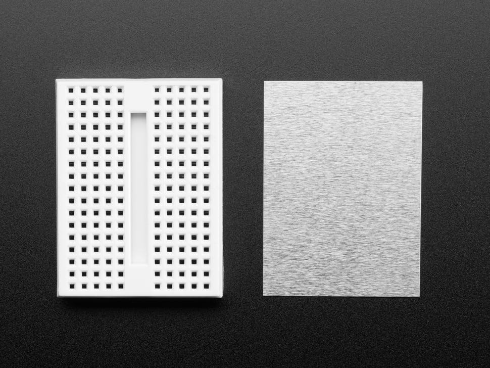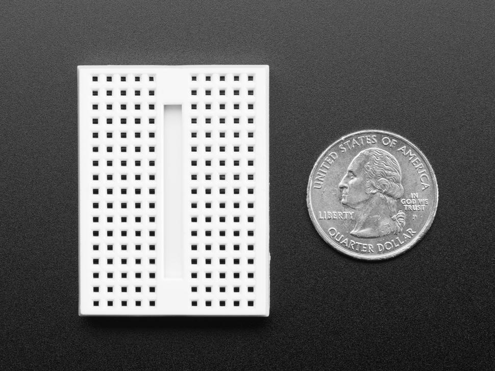 Dit is een klein breadboard , half zo groot als een breadboard van een halve grootte, geoptimaliseerd voor compacte elektronicaprojecten. Met afmetingen van slechts 46 x 36 mm (1,8 x 1,4 inch) past het perfect op Arduino protoshields voor veelzijdige experimenten.