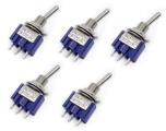 Deze set bevat 5 tuimelschakelaars met 3 standen: Aan, Uit en Aan. Ze zijn geschikt voor basis toepassingen en hebben een maximum rating van 6A en 125VDC. Deze schakelaars zijn eenvoudig te installeren en bieden een simpele manier om de stroomvoorziening te regelen. Ze zijn ideaal voor kleinere projecten en doe-het-zelf klussen.