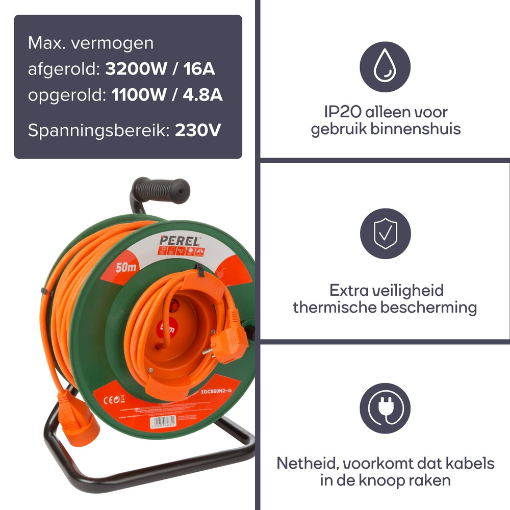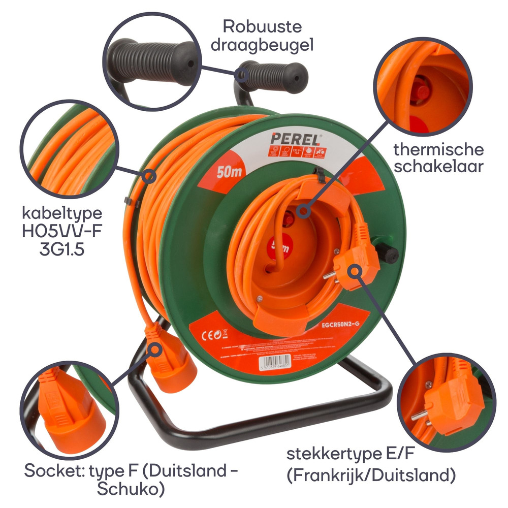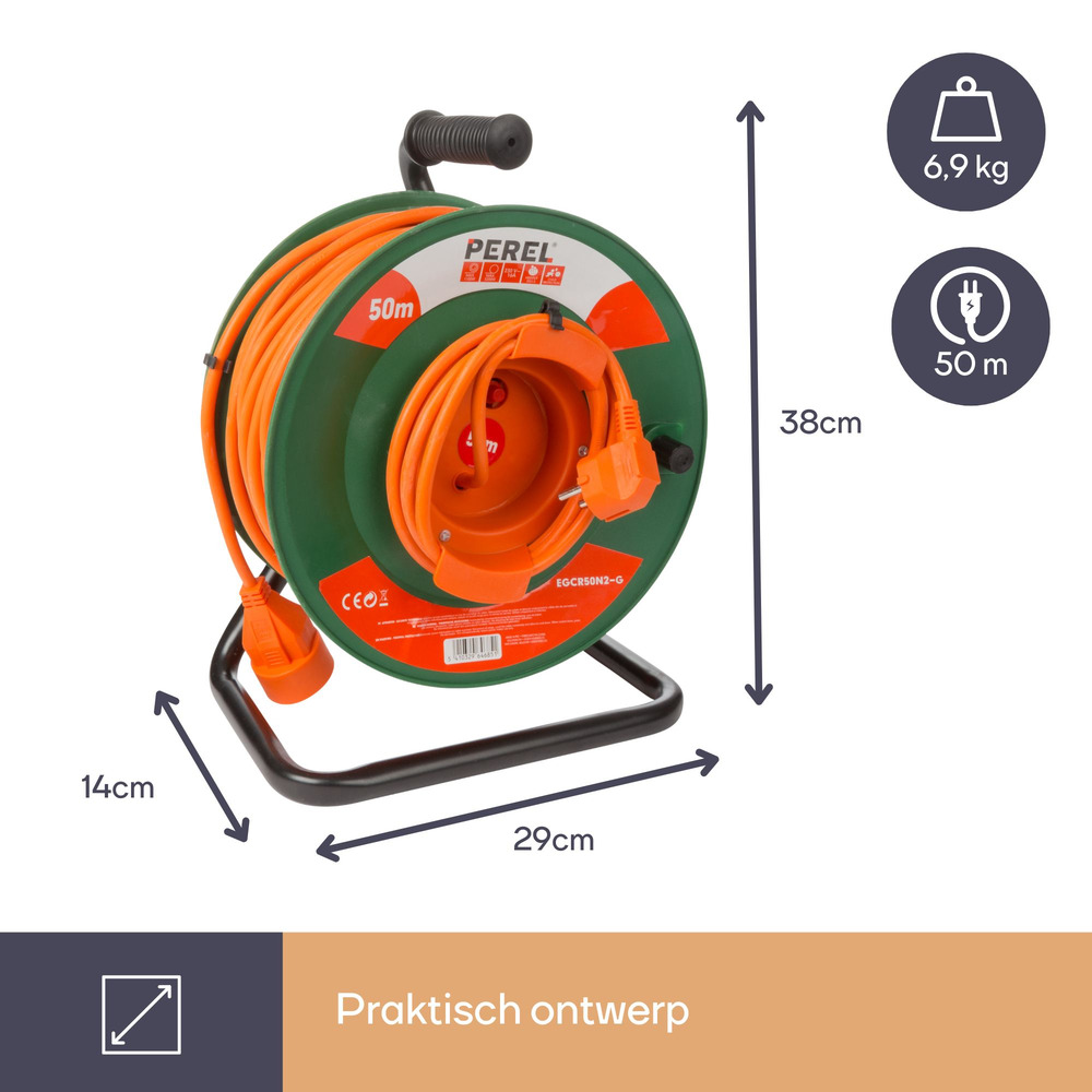Perel TUINHASPEL 50 m - 3G1.5 Stroom Verlengsnoer Rol