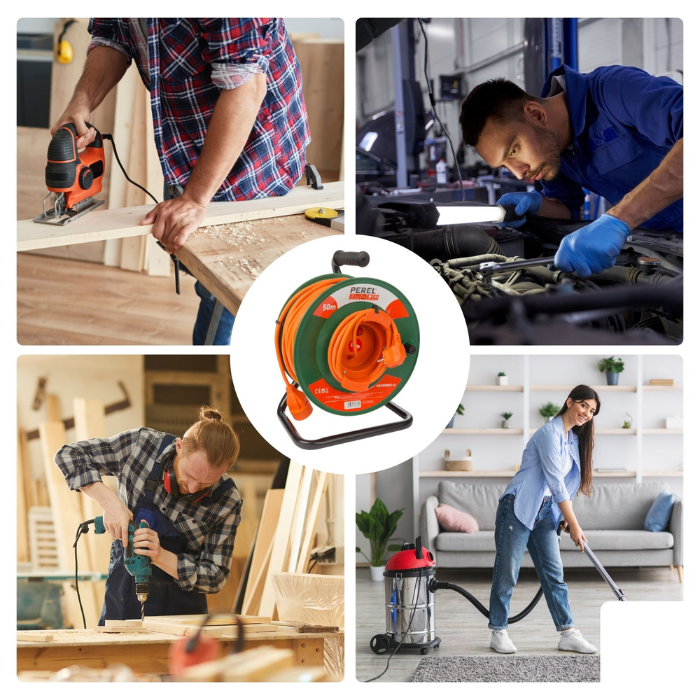Of je nu een goed verlichte werkplaats wilt onderhouden of tuingereedschap wilt voeden, deze verlenghaspel zorgt voor betrouwbare connectiviteit waar je het nodig hebt. De stevige behuizing en het handige oprolmechanisme lijken op een trouwe beschermer van elektriciteit.