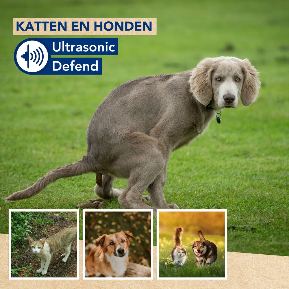 Ultrasonic Defend biedt een innovatieve oplossing voor het beheren van dieren, en houdt effectief honden en katten uit gebieden tot 200m² met behulp van niet-invasieve ultrasone golven. Het is net alsof je een onzichtbare barrière creëert die alleen je huisdieren kunnen aanvoelen.