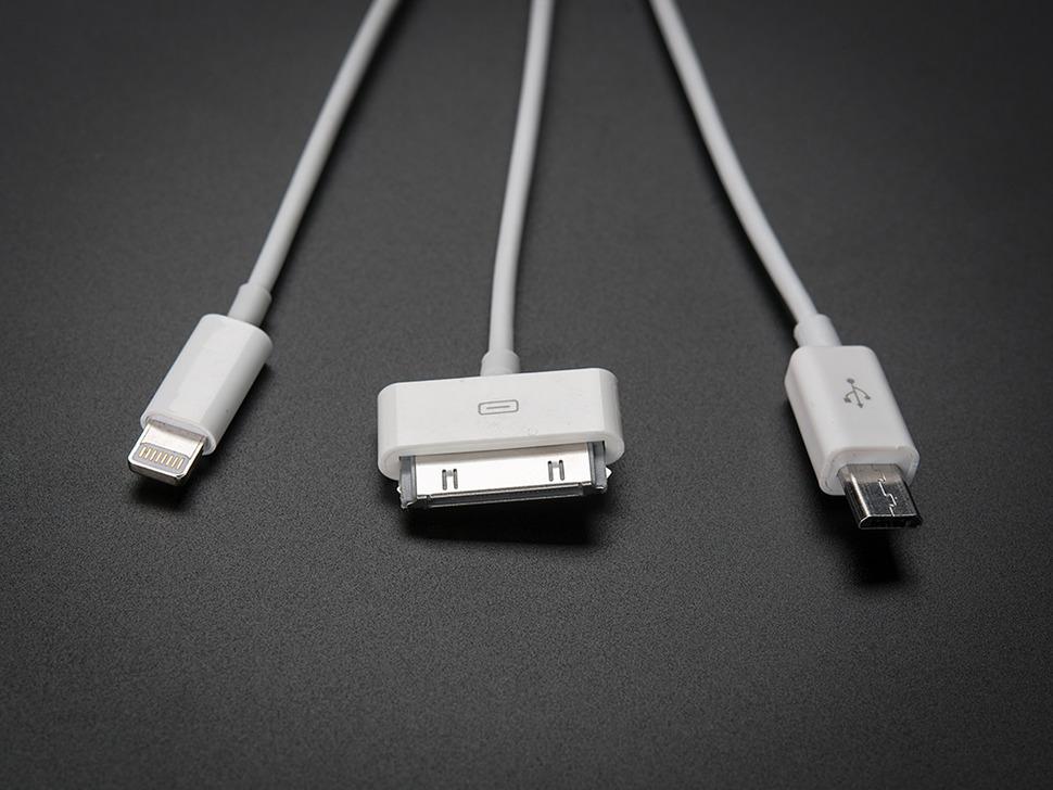 Adafruit USB 3-weg oplaadkabel - iPhone 5/iPhone/iPad en MicroUSB
