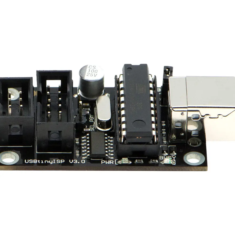 Deze programmeur is gebaseerd op de robuuste USBtiny-code en het ontwerp van versie 2.0 en is ontworpen voor stabiliteit en efficiëntie. De doordachte integratie van zowel 6-pins als 10-pins AVR -standaard connectoren en kabels onderstreept de gereedheid voor directe implementatie. Het product is in de loop der tijd geëvolueerd, zoals blijkt uit updates zoals de V3 hardwarerevisie, die een verbeterde board biedt. Deze wijziging verbetert de bruikbaarheid aanzienlijk en garandeert tegelijkertijd de compatibiliteit met oudere versies, waardoor het een betrouwbare tool is in de gereedschapskist van elke ontwikkelaar.