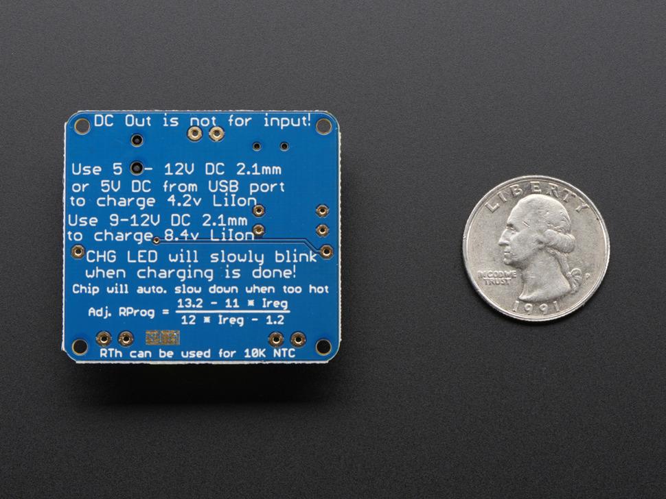 Een standaard laadstroom van 500 mA is vooraf ingesteld en instelbaar via een through-hole weerstand, met een veiligheidstimer die het laden na 14 uur stopt. Voor degenen met technische expertise kan een ingebouwde 10K-thermistor eenvoudig worden vervangen of aangevuld op basis van de specificaties datasheet .
