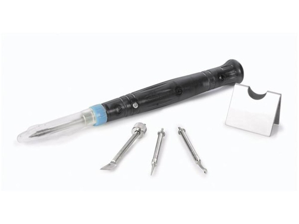 De VTSUSB is compatibel met materialen zoals PLA en ABS, waardoor het ideaal is voor het afwerken, repareren en aanpassen van je 3D-creaties. Dit zwarte en metalen gadget, met gele accenten, is 117 mm hoog en weegt slechts 120 gram.