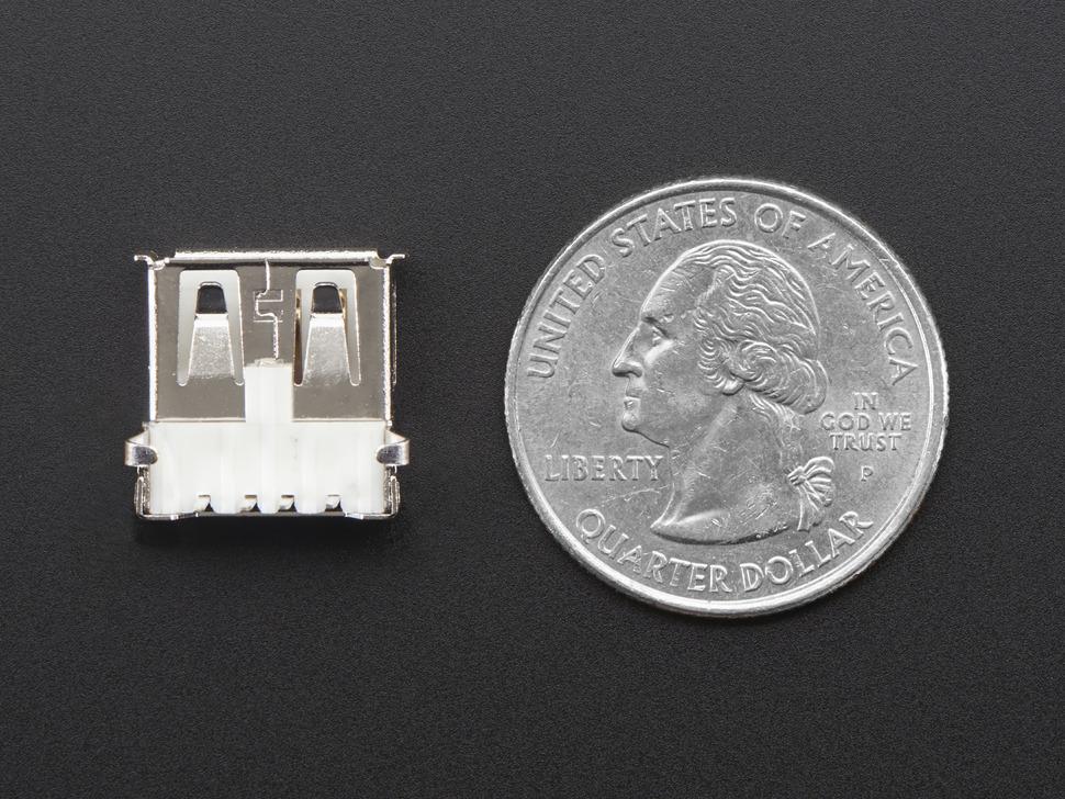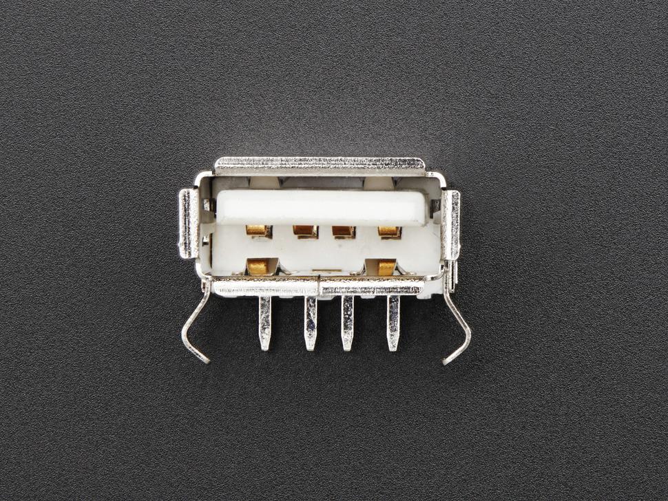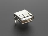 Dit is een standaard USB -A-aansluiting met een robuuste metalen constructie voor duurzaamheid en betrouwbaarheid. Hij heeft vier pinnen aan de achterkant en twee kleine montagelipjes, waardoor hij eenvoudig in diverse USB projecten kan worden geïntegreerd.