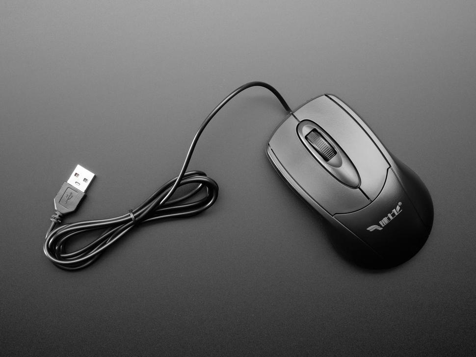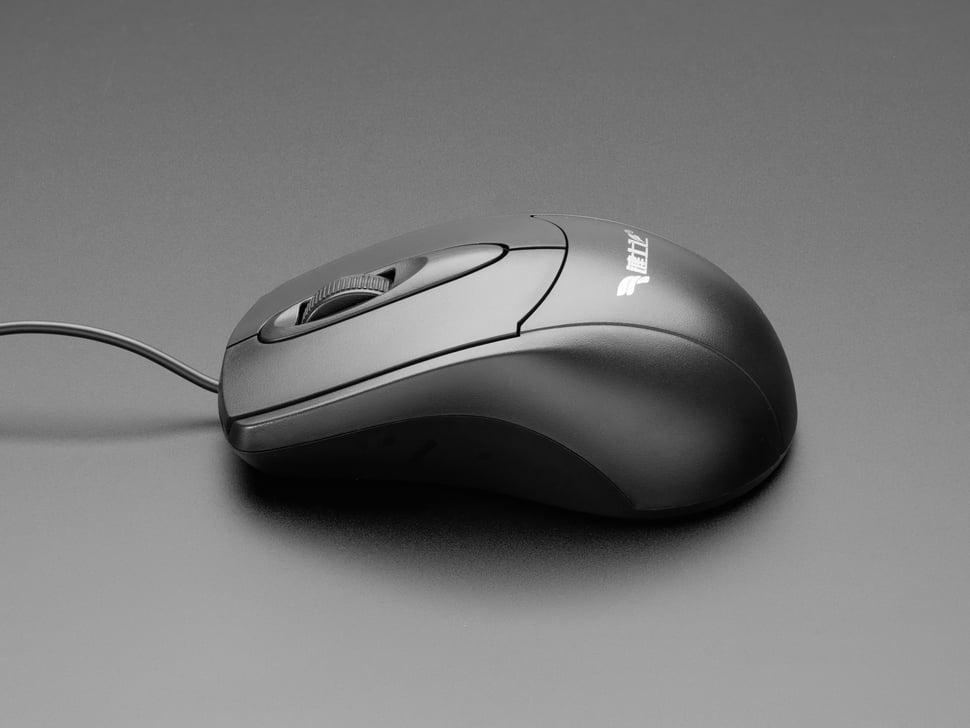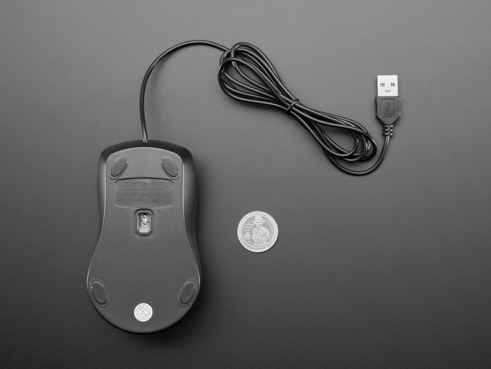 Wordt geleverd in een mooie Adafruit zwarte kleur, zoals te zien is op de prachtige foto's hierboven. Hij is ook groot genoeg om comfortabel in je hand te passen. Hij werkt prima met Raspberry Pi en elk ander type computer, omdat het een standaard HID-muis is!