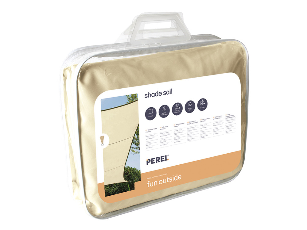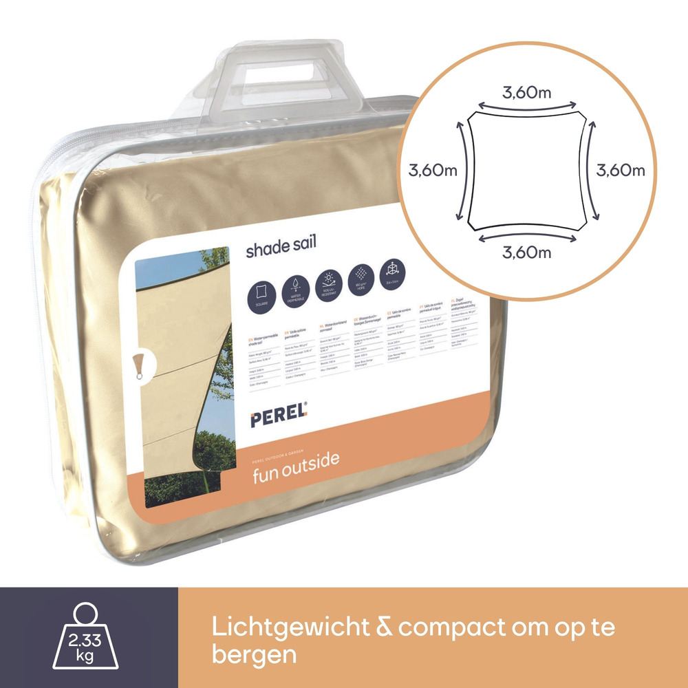 Perel WATERDOORLATEND ZONNEZEIL - VIERKANT - 3,6 x 3,6 m - KLEUR: CHAMPAGNE