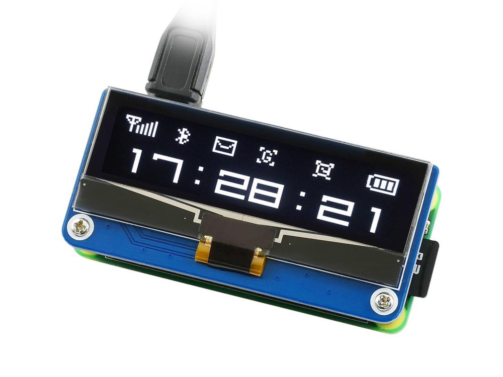 Dit is een OLED-display HAT voor Raspberry Pi, 2,23 inch diagonaal, 128 × 32 pixels, met ingebouwde SSD1305-driver, communicerend via SPI of I2C-interface. Probeer je een besturingsinterface voor de Pi toe te voegen? Dit compacte scherm is de ideale keuze.