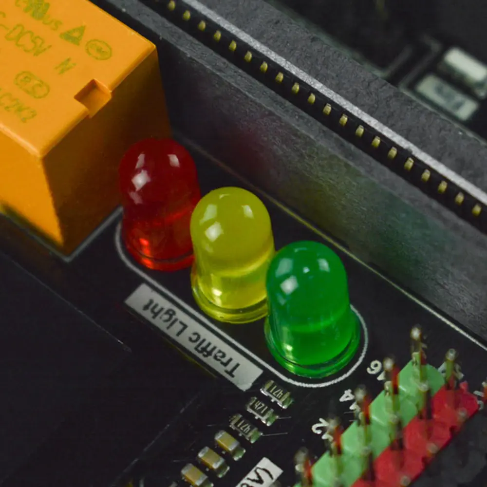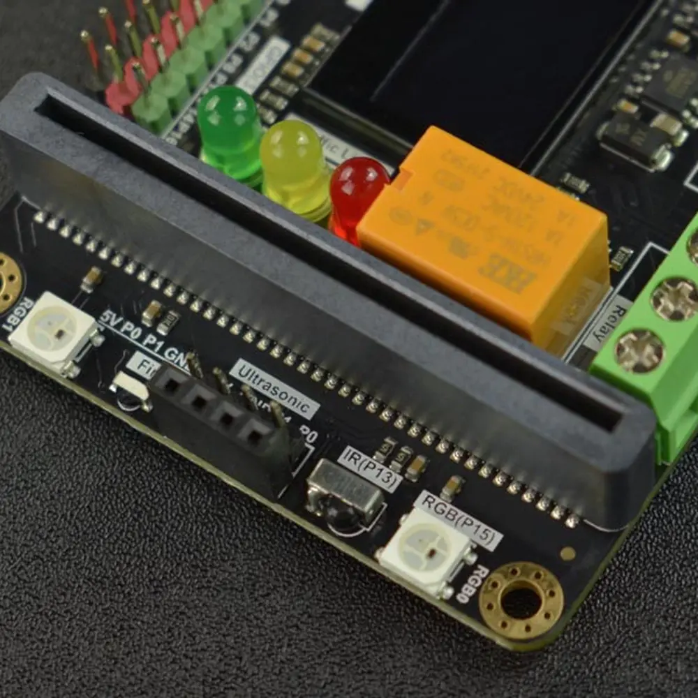 Extra mogelijkheden zijn onder andere het beheren van een IR-gestuurde relaisschakelaar, het instellen van een brandalarm, het meten van afstanden met een SR04 ultrasone sensor en het aansturen van motoren in vier richtingen. Elk van deze functies opent een wereld aan interactieve en praktische leerervaringen, waardoor deze board een veelzijdige uitbreiding is voor uw Micro:bit V2.