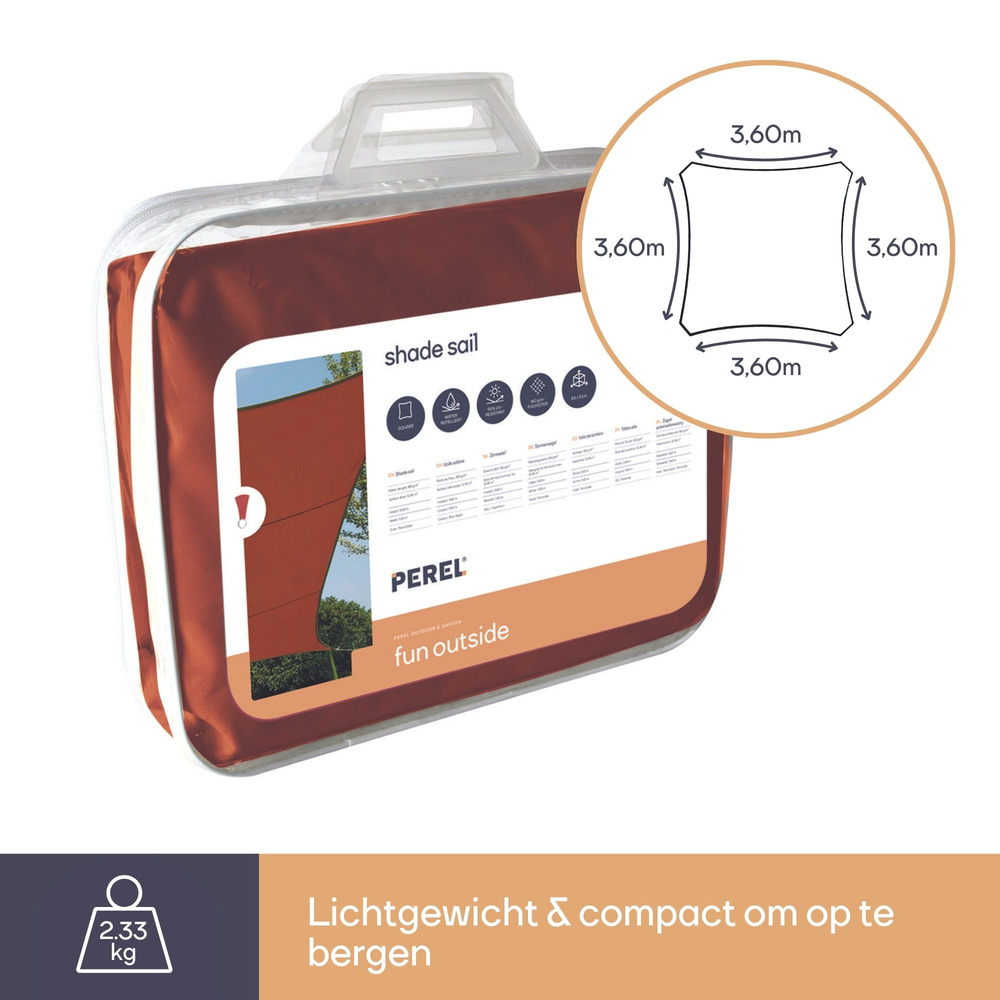 Perel Zonnescherm Vierkant 3,6m x 3,6m in Terracotta Klik op een ster om een beoordeling te geven