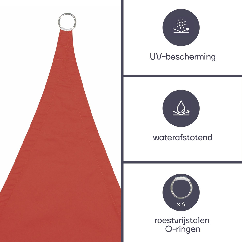 Verander elke buitenruimte met de Zonnezeil Vierkant, die 3,6 bij 3,6 meter meet en een prachtige terracotta kleur heeft.